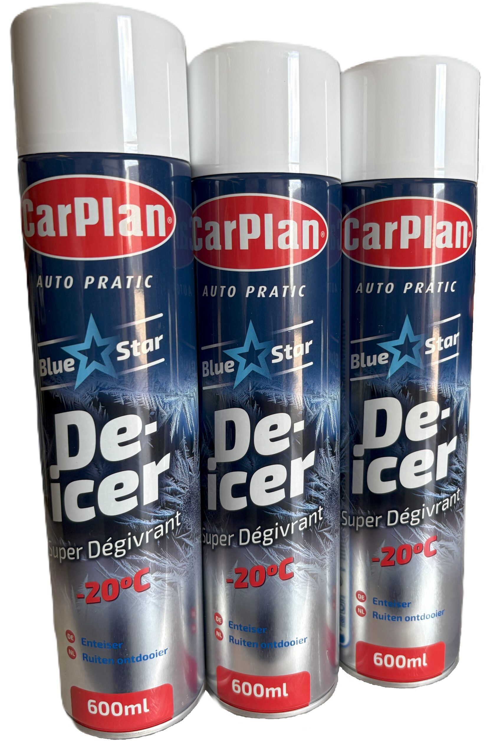 - CarPlan Blue Star De-icer is a fast acting de-icer, formulated to effectively defrost windscreens leaving a clear finish for increased visibility. Melts ice fast and helps prevent re-freezing down to -20C