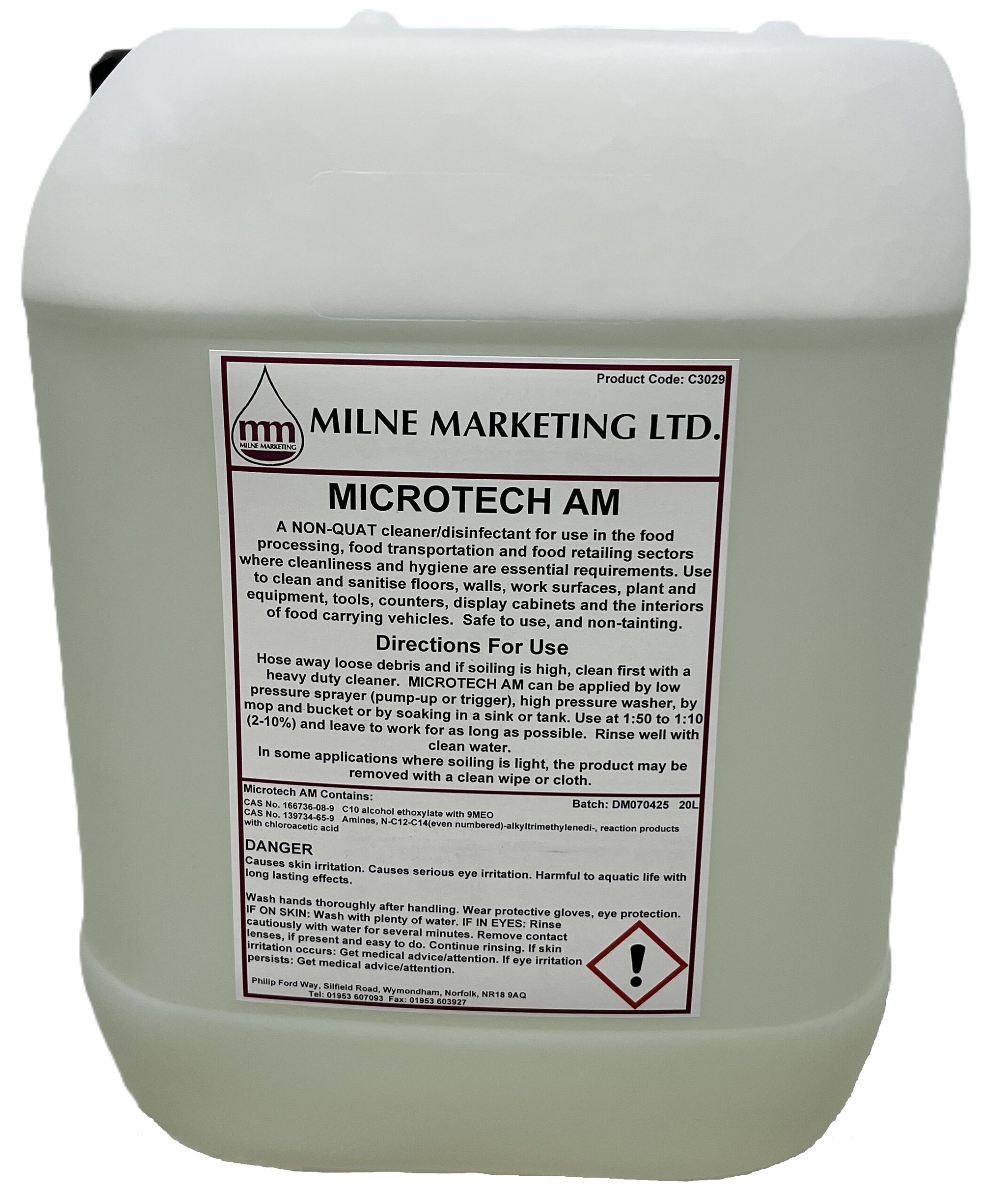 Non bleach based Mircotech AM cleaner and disinfectant used in food processing, transportation and retail sectors from a chemical supplier in Wymondham