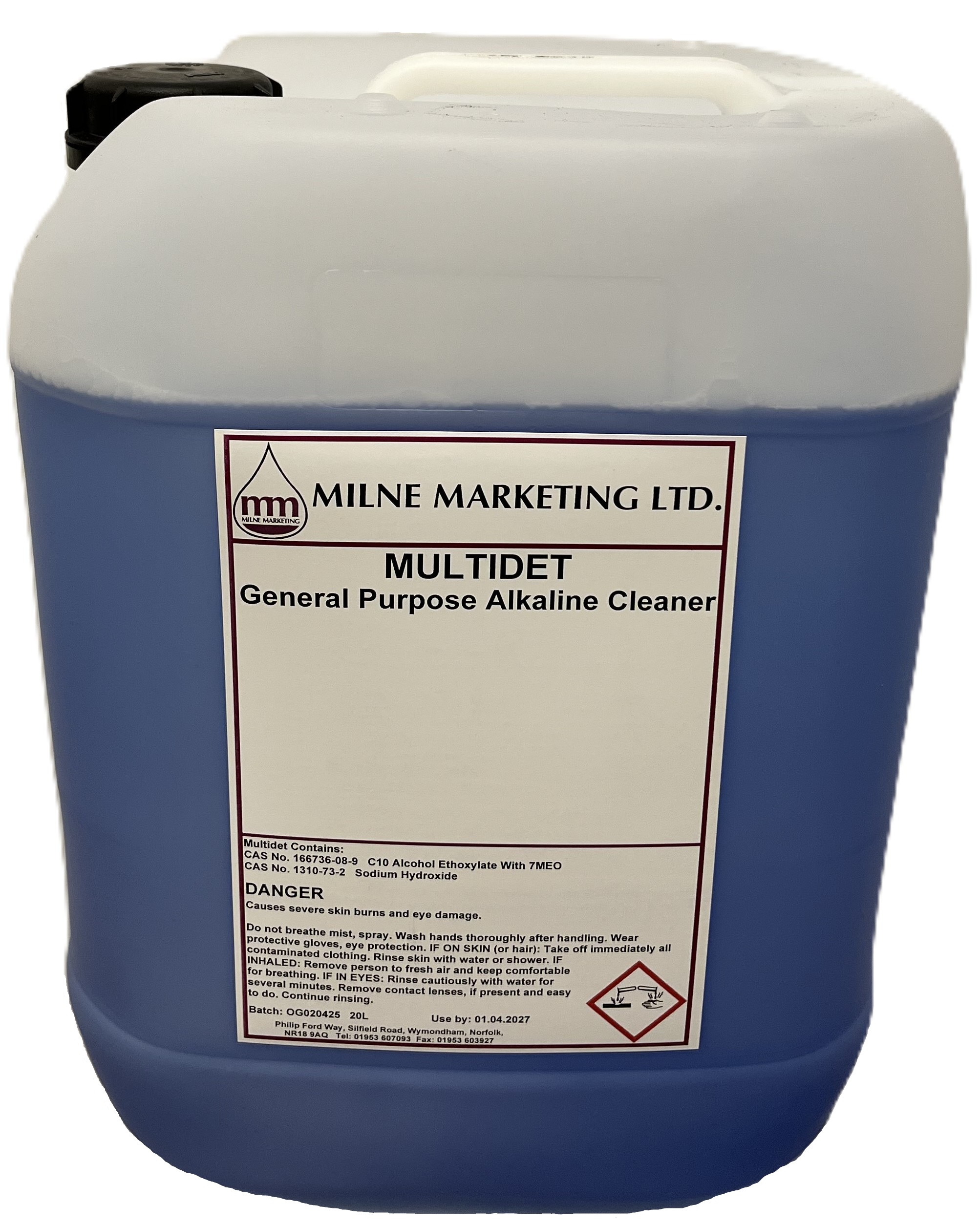 Milne Chemicals based in Wymondham, Norfolk are suppliers of Multidet general purpose alkaline cleaner